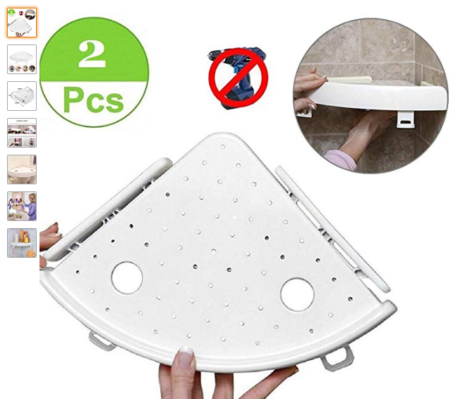BNcompany Double Tier Bathroom Corner Shelves with PP Plastic and TPR Suction Cups-Easy Install & Clean