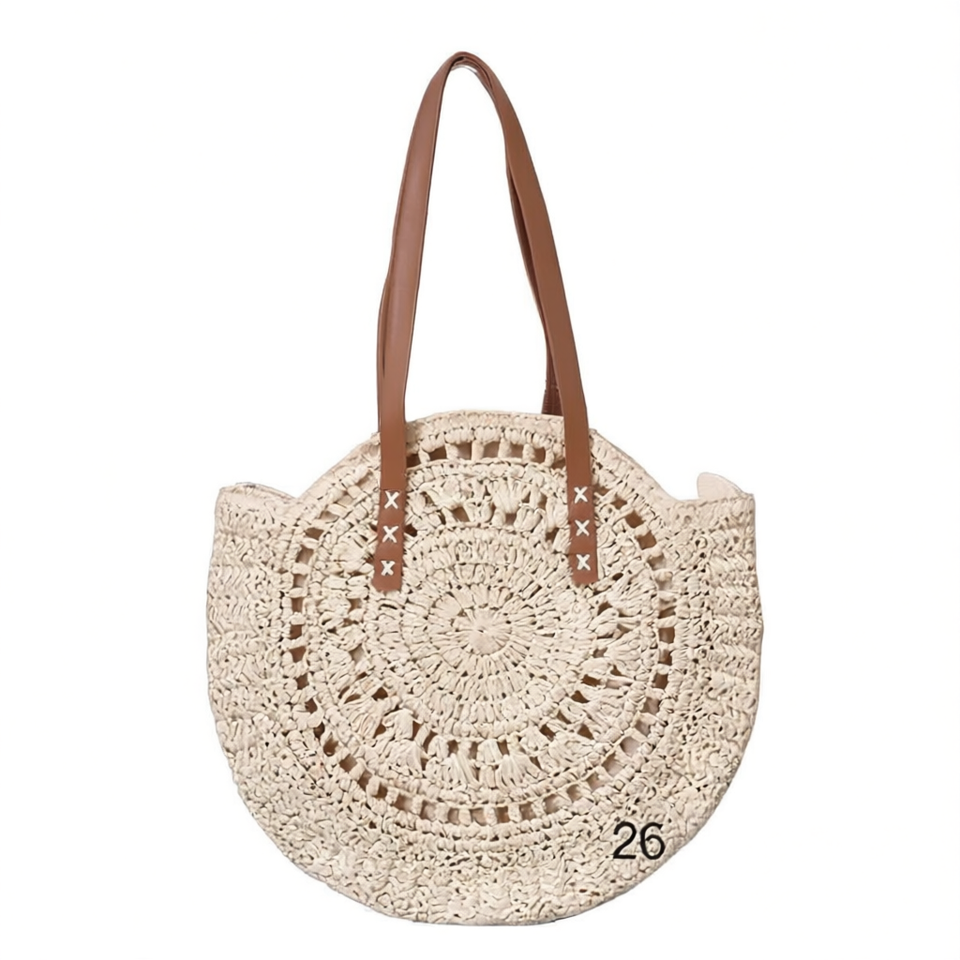 Borsa Tote Rotonda in Carta Intrecciata Traforata 45cm, Borsa da Spiaggia Estiva per Donna