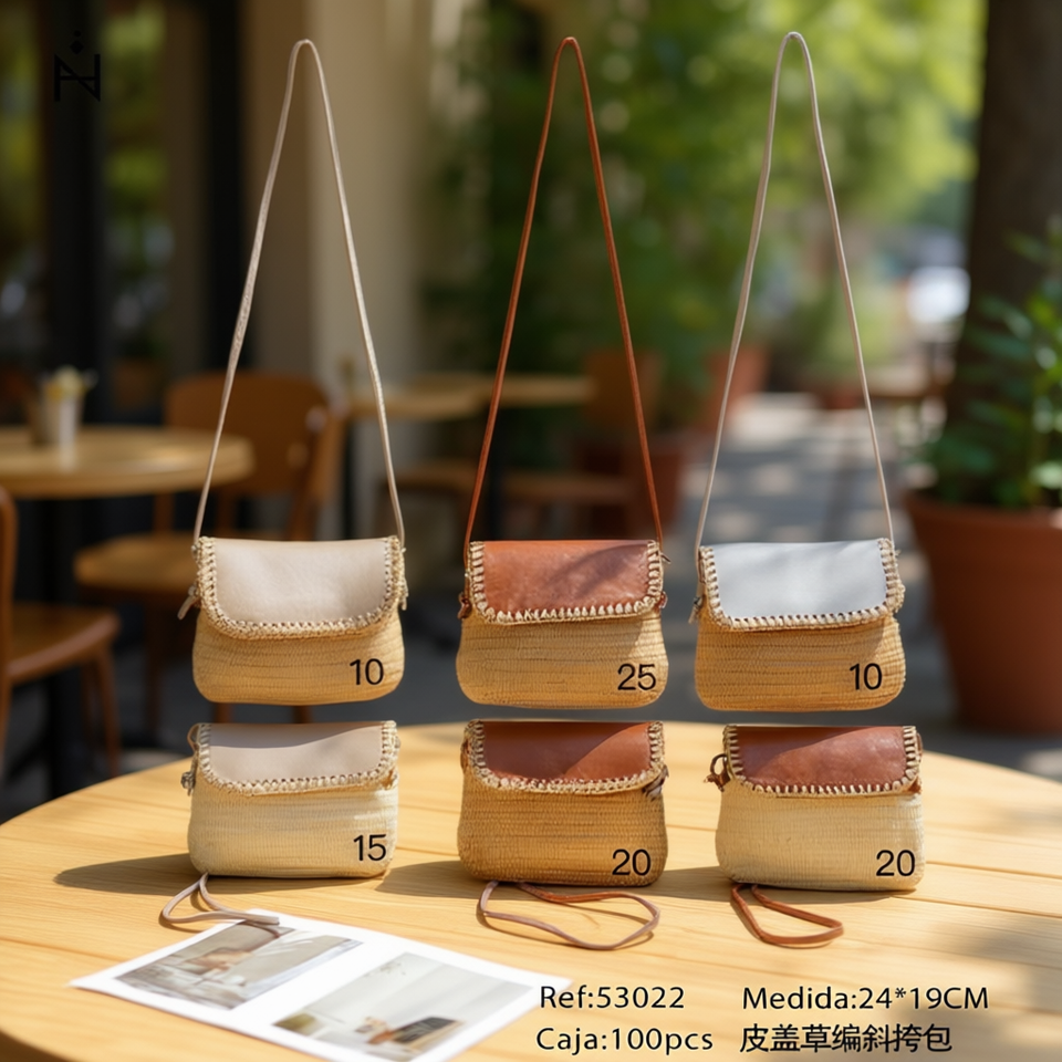 Borsa a Tracolla in Paglia Rivestita in Pelle BOLSOS 24x19cm, Accessorio Moda Donna