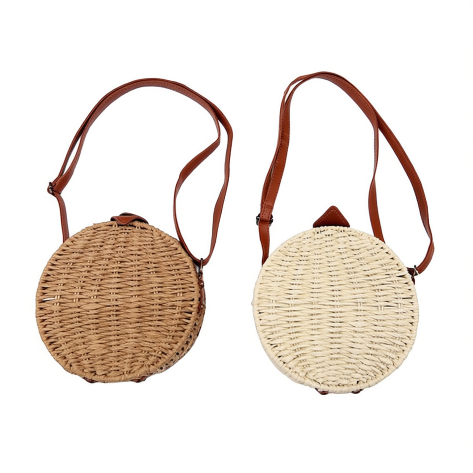 Borsa Rotonda Rigida in Paglia BOLSOS 18x7cm, Borsa a Tracolla Estiva da Spiaggia per Donna