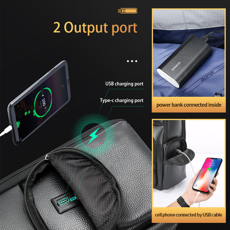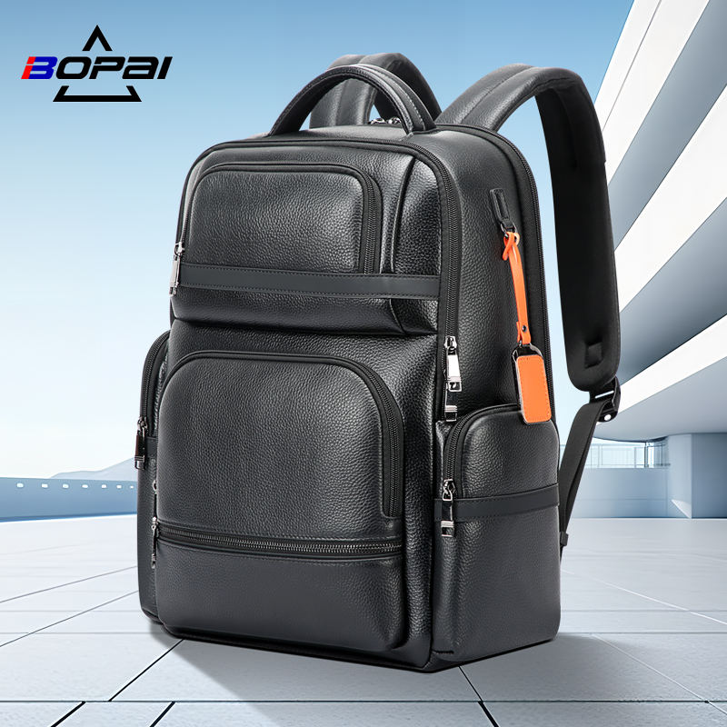 BOPAI commercio all'ingrosso OEM uomini 15.6 d'affari borsa in pelle PC di lusso antifurto espandibile zaino USB da viaggio ricarica zaino