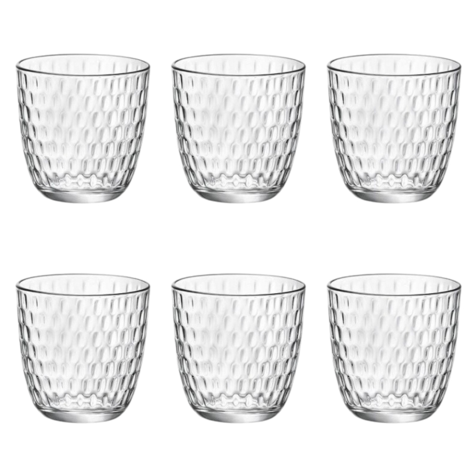 BORMIOLI - SET OF 6 SLOT LINE WATER GLASSES IN CLEAR GLASS 29CL