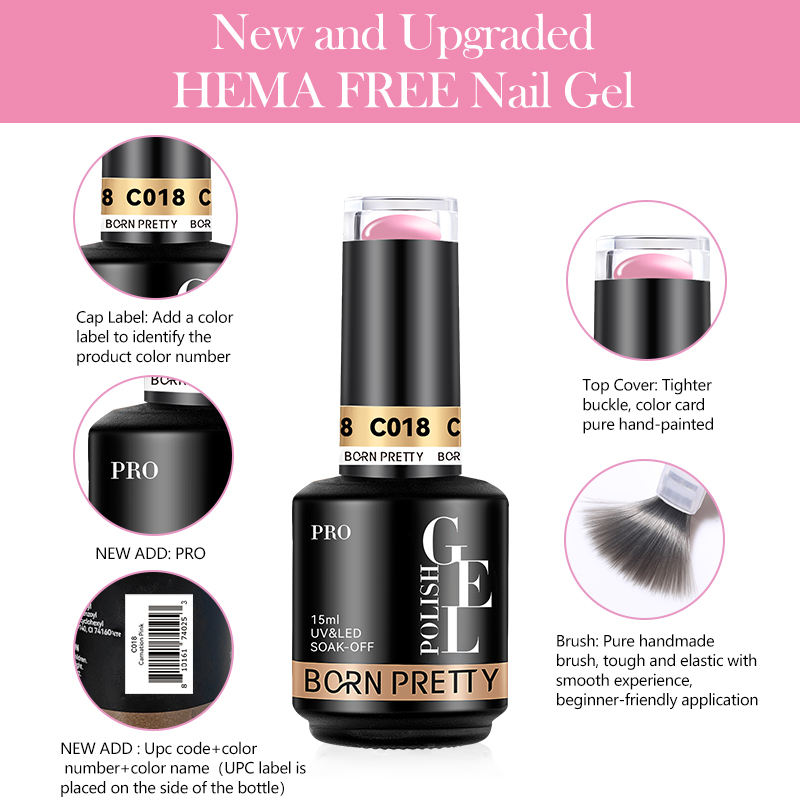 BORN PRETTY Gel per unghie PRO 15 ml UV/LED, senza HEMA, vegan e cruelty-free, soak-off – set 60 colori, certificazioni CE/MSDS/CPNP