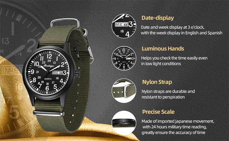 BOSHIYA uomo campo sport all'aria aperta/orologio da lavoro al quarzo a tre mani minimalista in Nylon leggero orologio 40mm