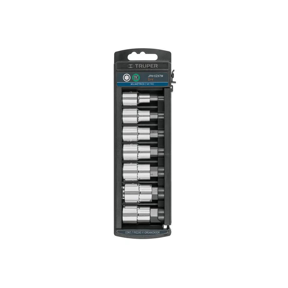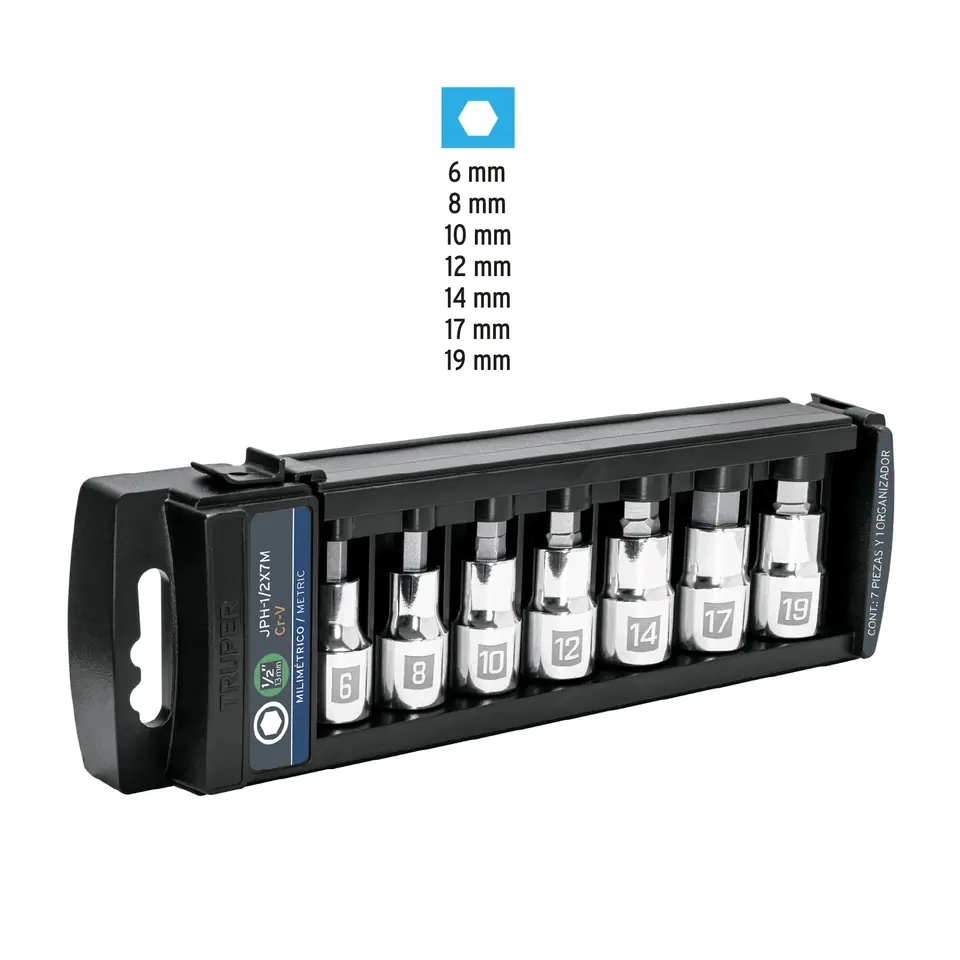 BOX 3 Set di 7 bussole, attacco da 1/2'', punta esagonale, mm, TRUPER