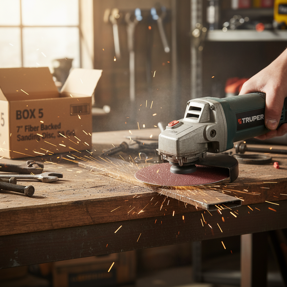 Disco abrasivo con supporto in fibra BOX 5 7', grana 36, TRUPER