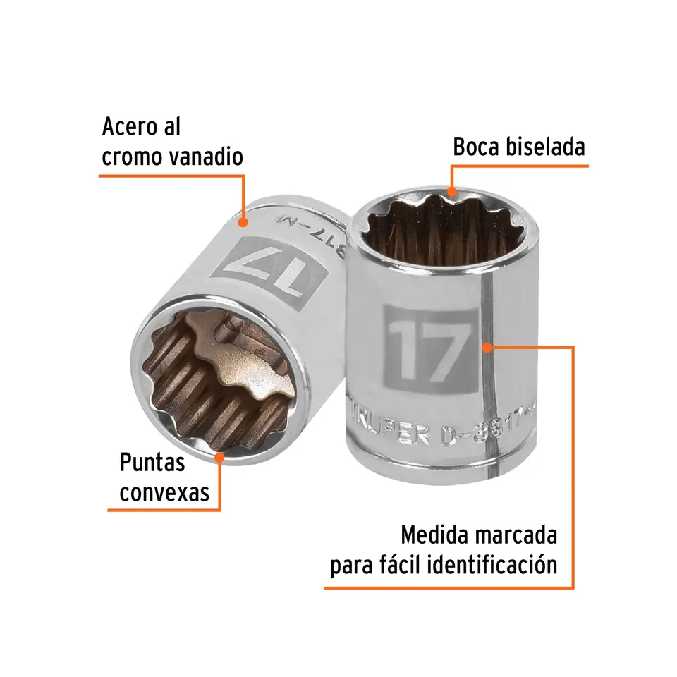 BOX 6 Chiave a Bussola da 17mm, 12 Punte, Attacco da 3/8'', TRUPER