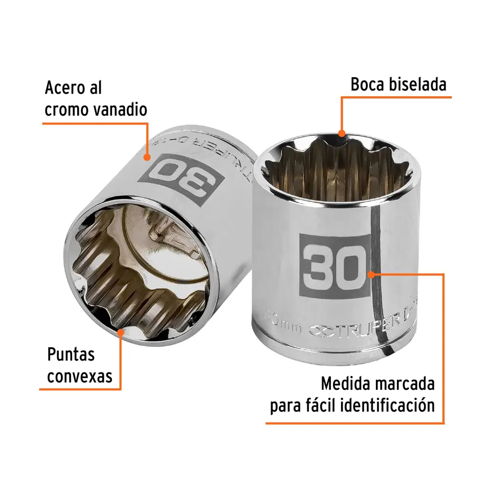 BOX 6 Chiave a bussola da 30 mm, 12 punte, attacco da 1/2 pollice, TRUPER