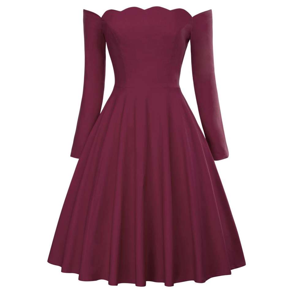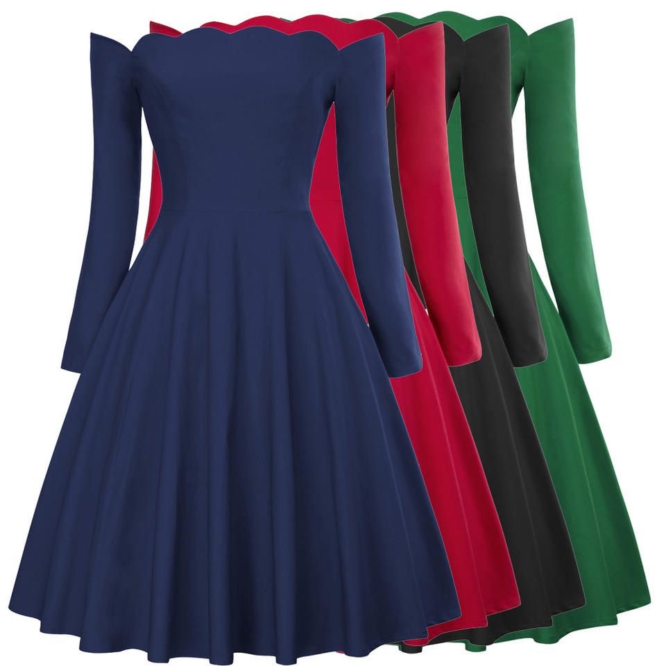 BP000485 Belle Poque Sexy Women Long Sleeve Off Shoulder Flared A-Line Retro Vintage Dress