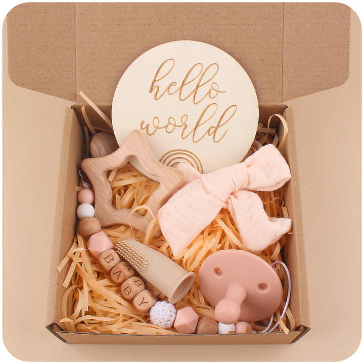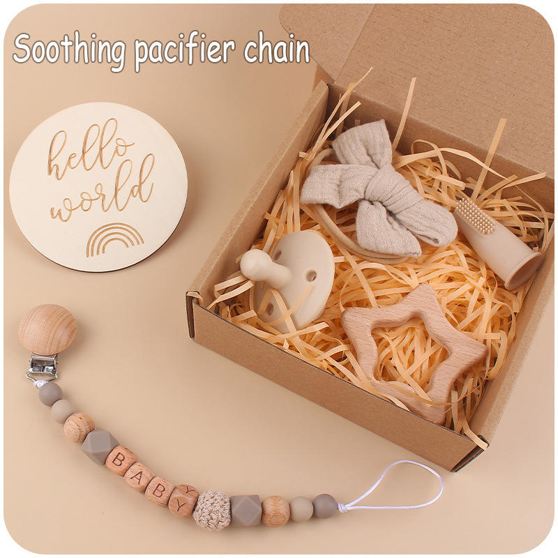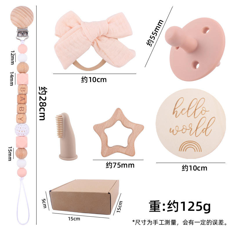 BPA Free uncinetto bambino massaggiagengive bambola legno di faggio neonato anello ciuccio Clip bambino Milestone nascita confezione regalo 6 pz/set