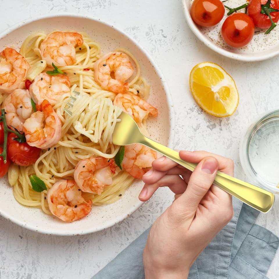 BPA-Free Heavy-Duty Disposable Plastic Utensils 200 Count Set 100 Gold Forks 50 Silver Spoons 50 Knives Heat Resistant Parties