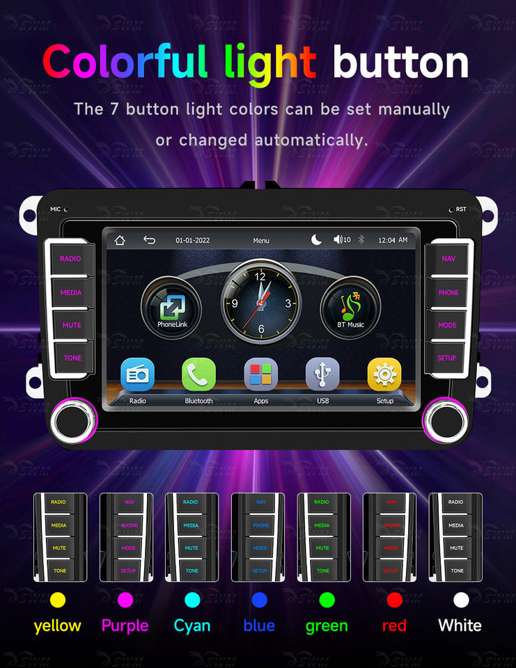 BQCC 7 Pollici Mp5 Wireless Carplay Android Schermo Carplay Mirrorlink RDS Stereo Multimediale per Auto per VW Amarok Caddy Golf V Golf Plus