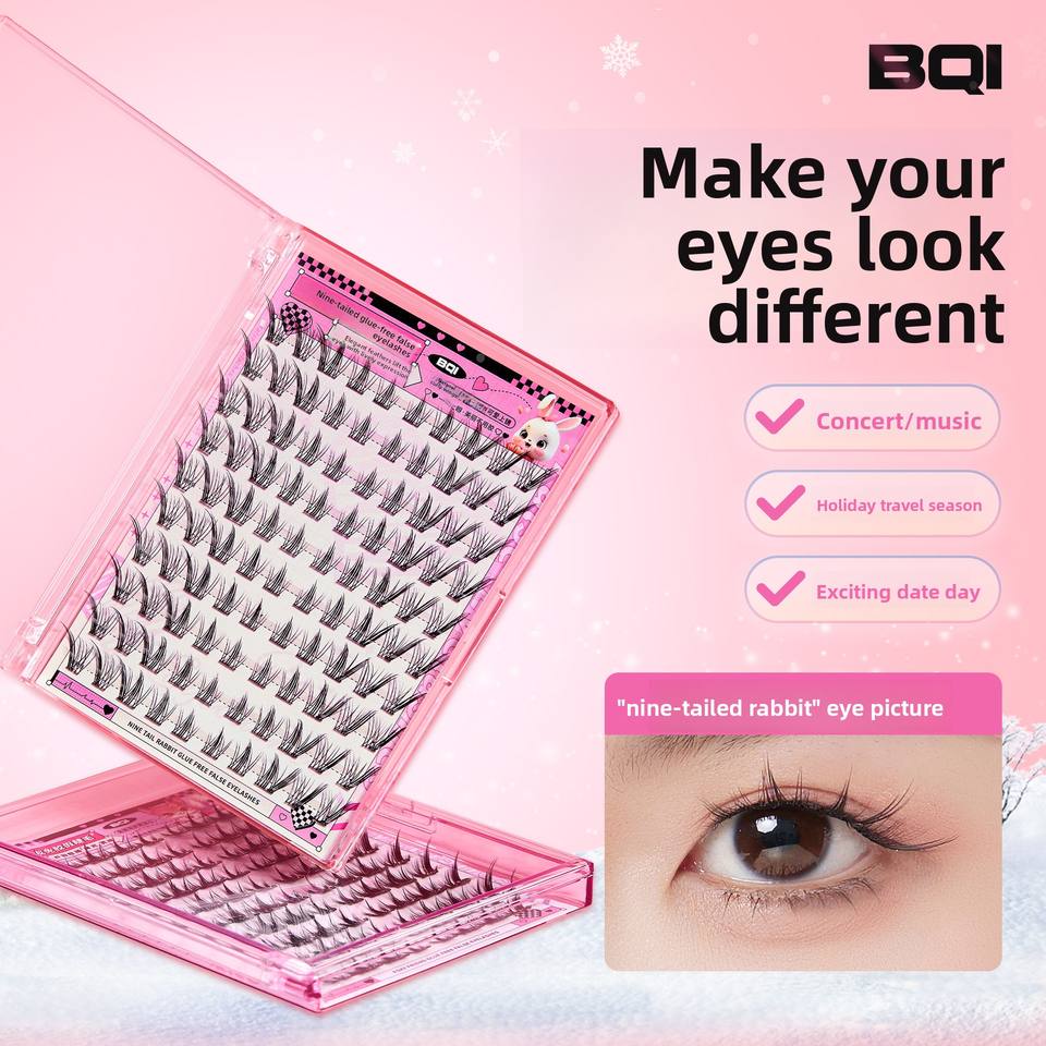 Ciglia Finte BQI a Nove Code di Coniglio, Senza Colla, Effetto Naturale, in Fibra Sintetica, per Occhi Cartoon, Densi e Ricci, dall'Aspetto Naturale