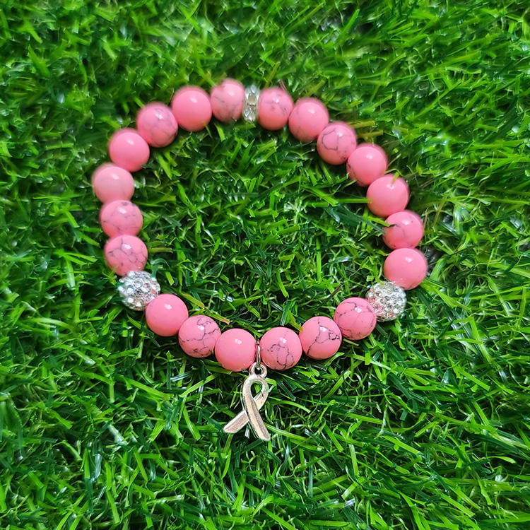 BR0502 Custom Argilla Polimerica Heishi Disco Bordato il Braccialetto con il fascino Perline di Pietra In Rilievo di Consapevolezza Del Cancro Al Seno Braccialetto