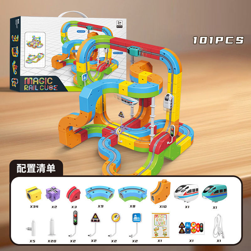 BS 2025 nuovo giocattolo educativo 99 pz Set di binari magici assemblati con auto elettrica