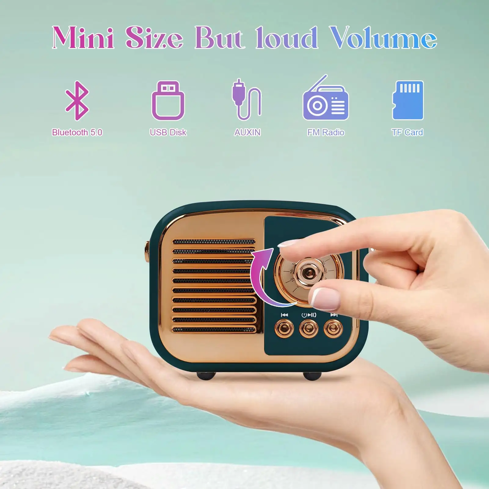 Altoparlante Mini BT Portatile Wireless Retrò Vintage BS-52D Subwoofer con Radio FM Bassi Stereo Chiamate in Vivavoce Funzione Audio AUX