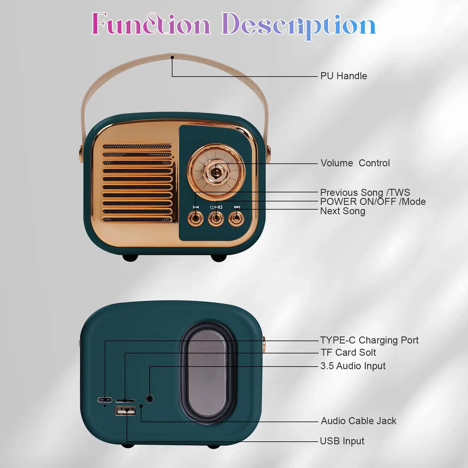 Stile:Altoparlante Bluetooth Retro