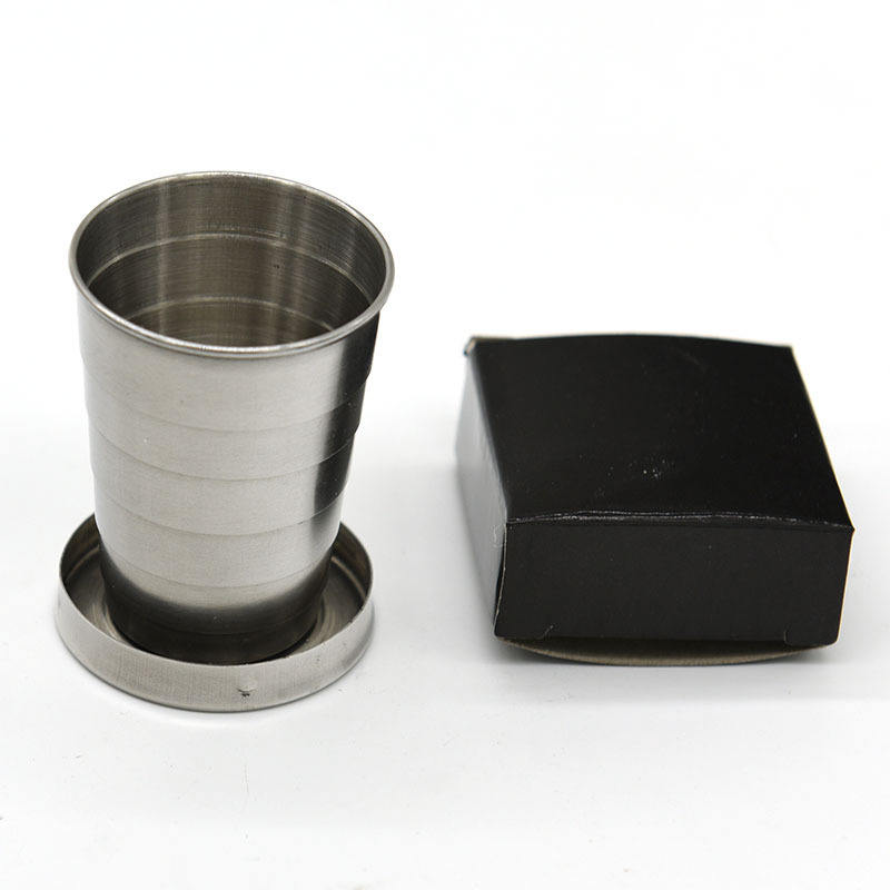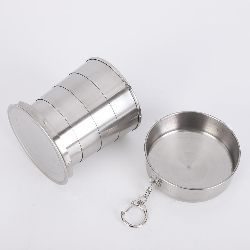 Bicchiere da Shot Pieghevole BST da 70ml 2oz in Acciaio Inox con Logo Personalizzato, Tazza Telescopica Portatile in Metallo con Portachiavi
