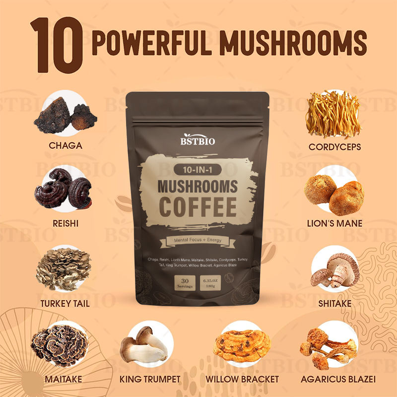 BSTBIO 10 in 1 leoni criniera Cordyceps coda di tacchino Reishi misto Arabica caffè ai funghi istantanei
