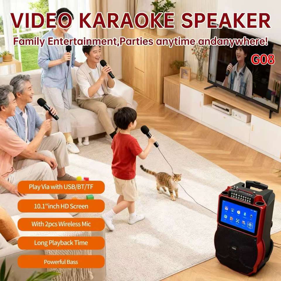 Altoparlante Bluetooth con Schermo, Speaker per Esterni, Altoparlante Multimediale per Casa e KTV, Supporto USB/MP3/AVI, Manopole di Regolazione del Volume