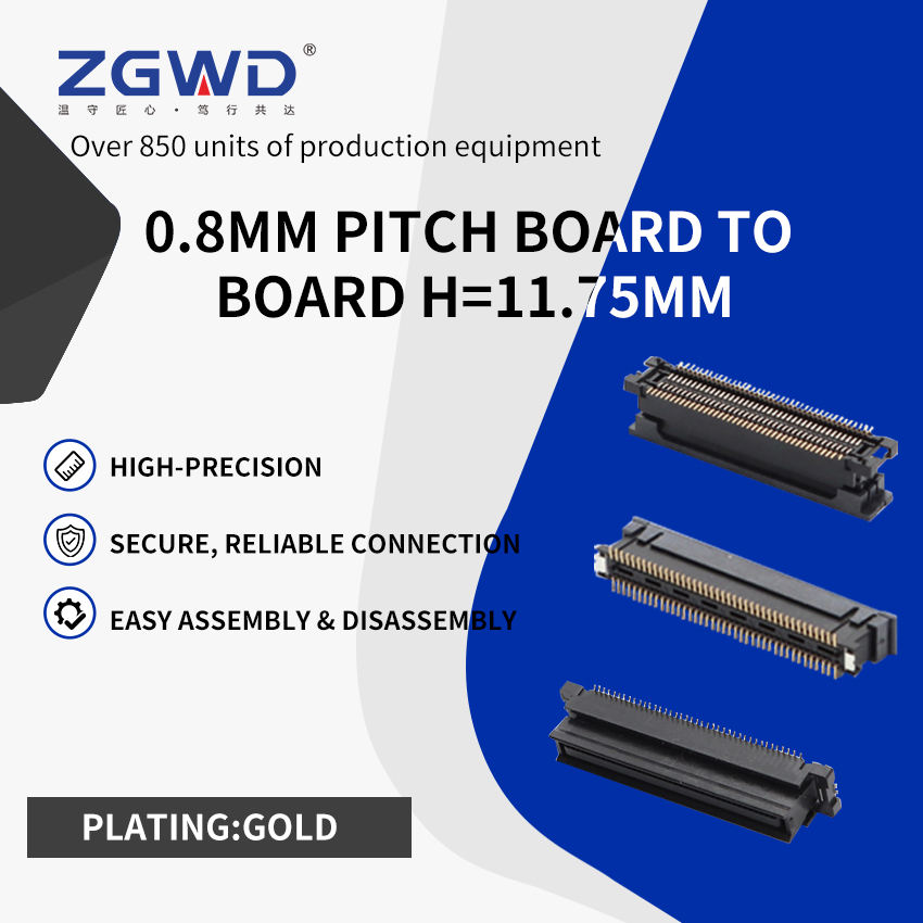 BTB 0.8mm Pitch Board to Board Connector SMT Vertical Gold Plated 11.75mm Height Male Female Connector