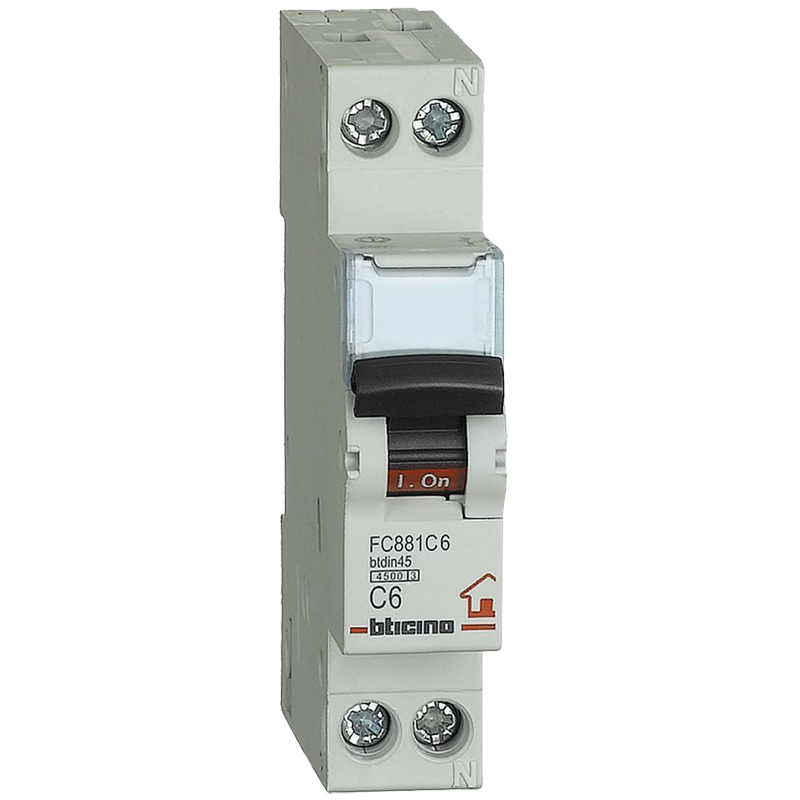 Interruttore Magnetotermico Compatto BTICINO 1P+N con Capacità di Corrente di 6A