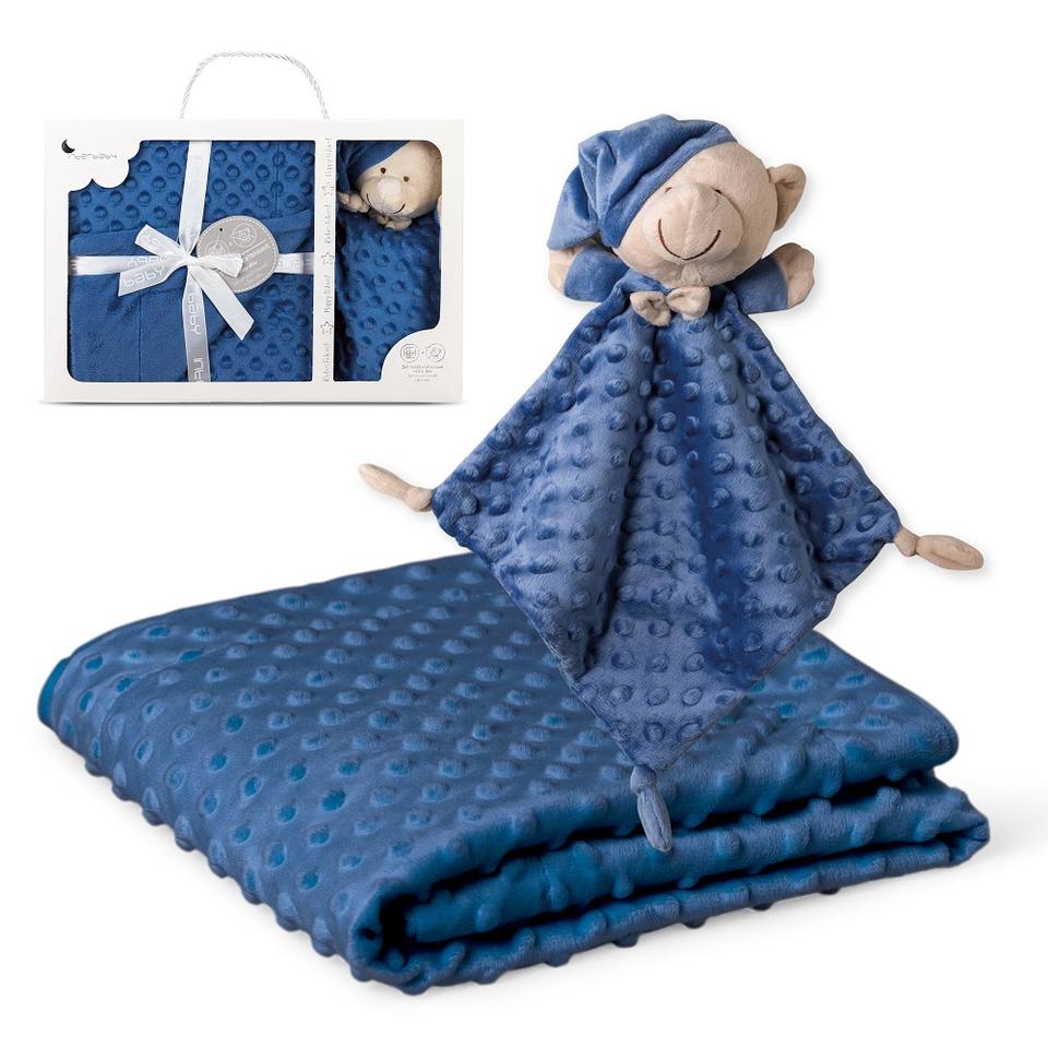 BUBBLE BLANKET-80 X 110-NAVY BLUE Dot Pattern Nonwoven Technics Coral Flecce + Doudou 28X17 MOD. OSITO
