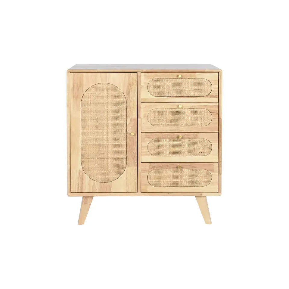 Buffet in Legno di Gomma e Rattan 73,5x35x78 Naturale