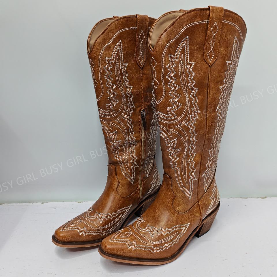 STIVALI DA DONNA L4530 MODA OCCIDENTALE NUOVI STIVALI DA COWBOY ALTEZZA GINOCCHIO CON ZIP E RICAMO PERSONALIZZATO, GRANDE TAGLIA 46, PER PRIMAVERA E INVERNO