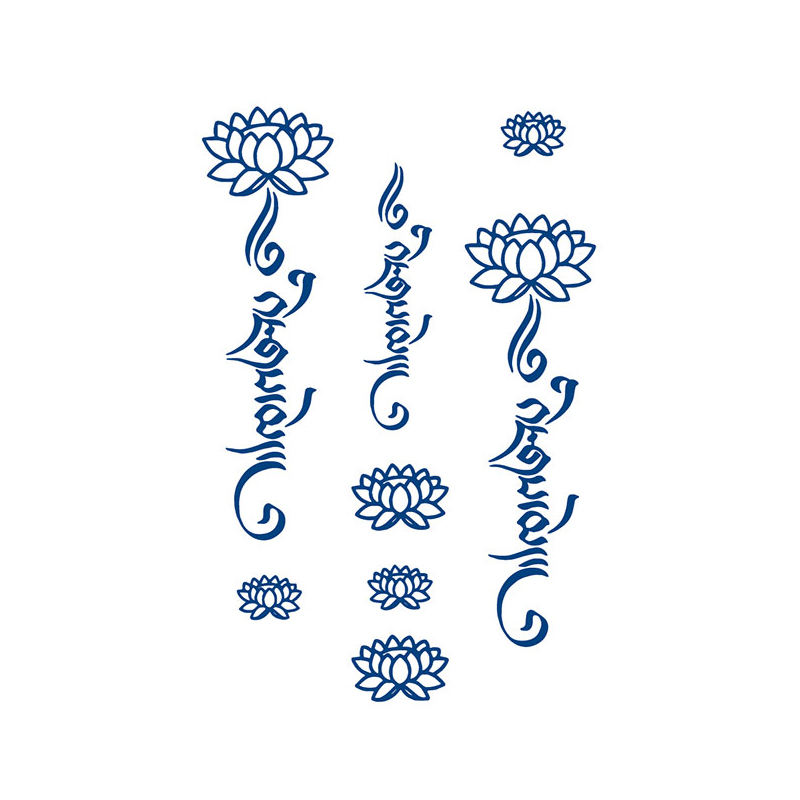 BXTAT Temporary Blue Genipa Juice Tattoos GZ085to90-Life Death Fate Cupid Lotus Sanskrit Pictographic Characters