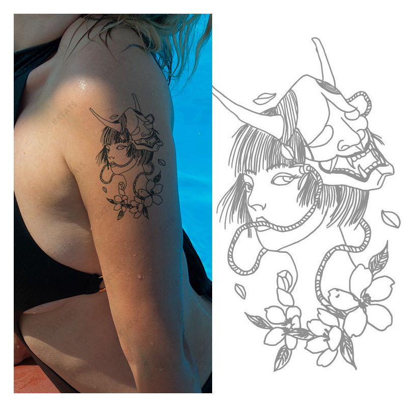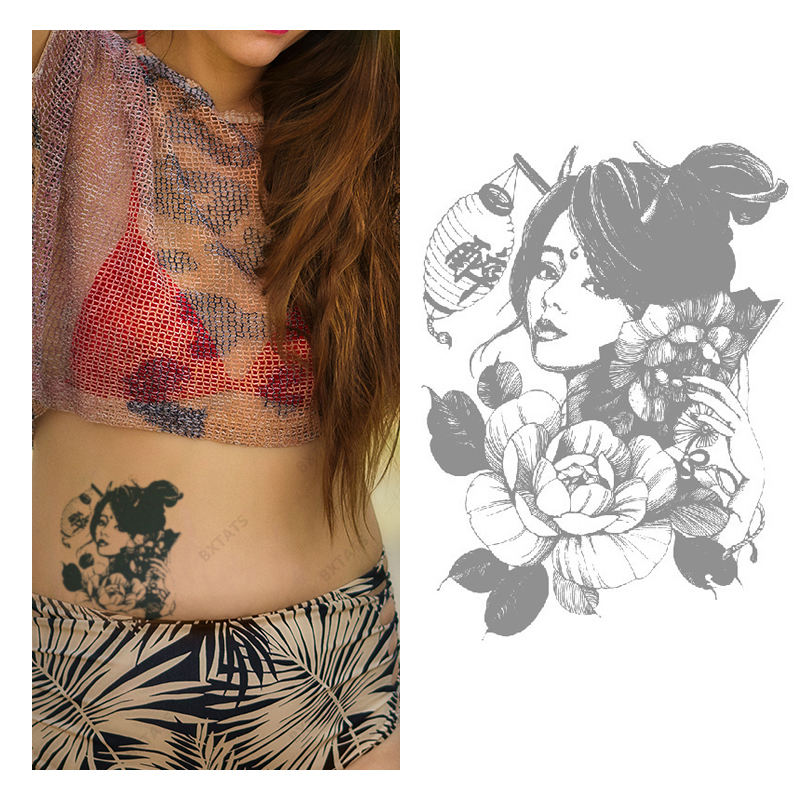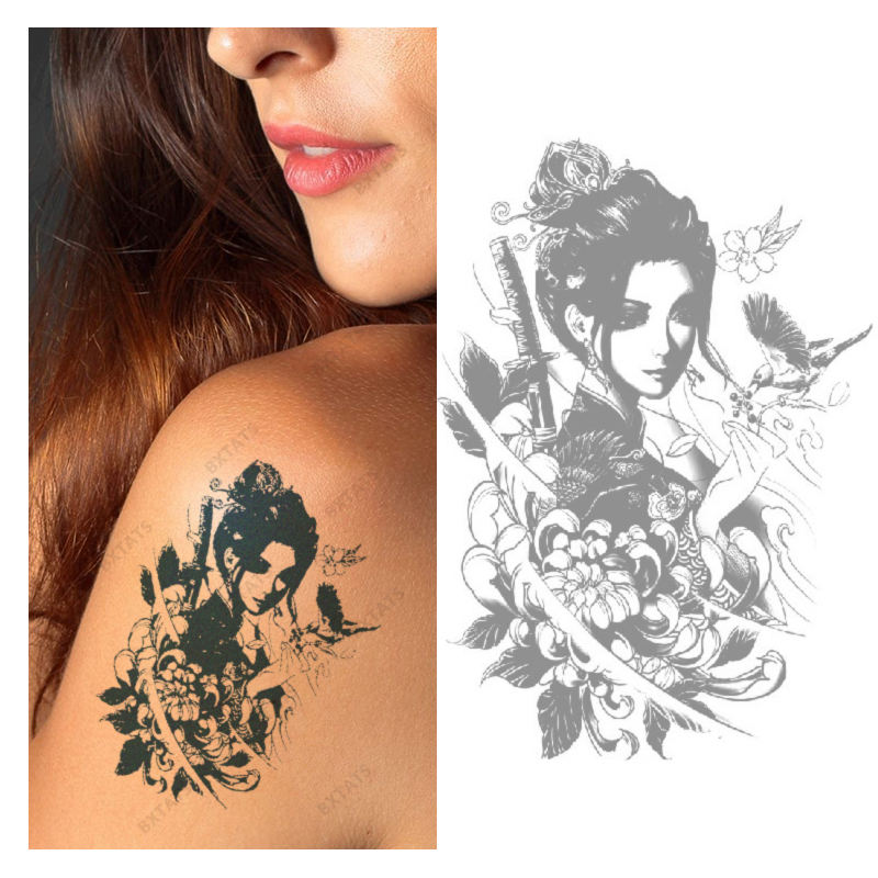 BXTATS Custom Japanese Ninja Warrior Geisha Water Transfer Tattoo Sticker Temporary Semi-Permanent Paper Lasting for 2 Weeks