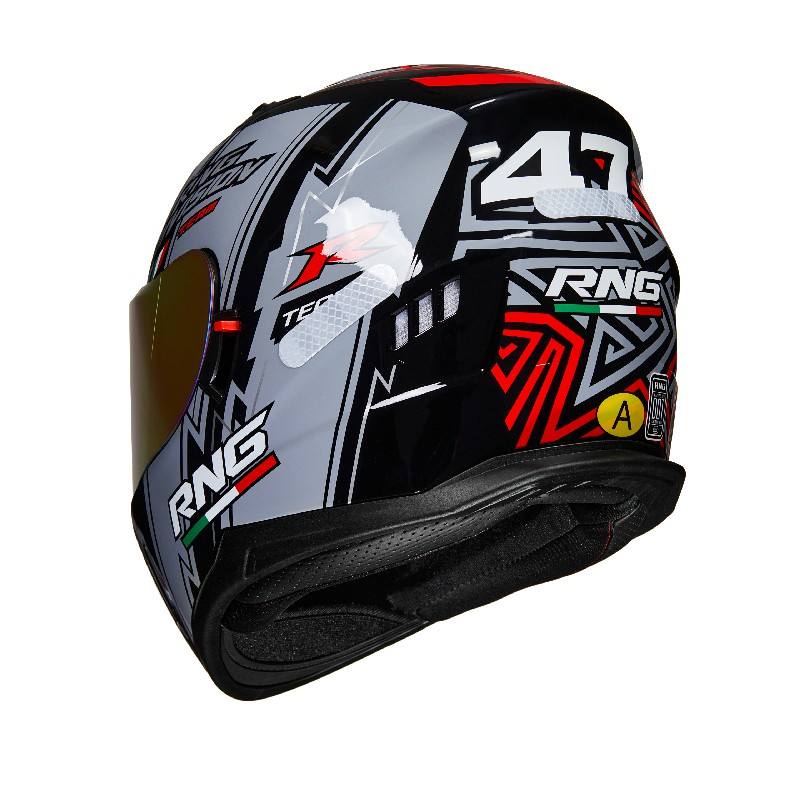 BYB/RNG rosso Lightning pioniere 168 posteriore con casco a doppia lente ventilato, casco protettivo multistrato, casco da moto