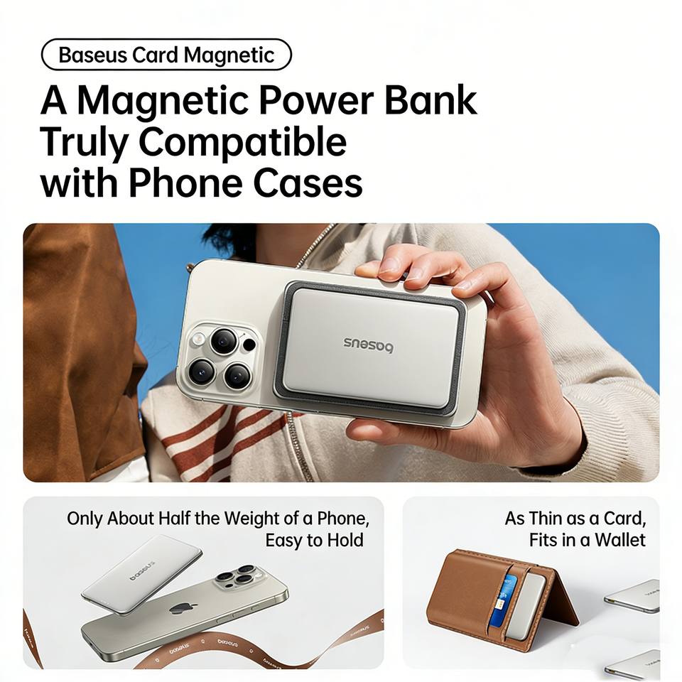 Ba seus PicoGo Ultra-Slim Magnetic Power Bank 10000mAh 27W Suitable for iPhone and Android phones PD fast charging power bank