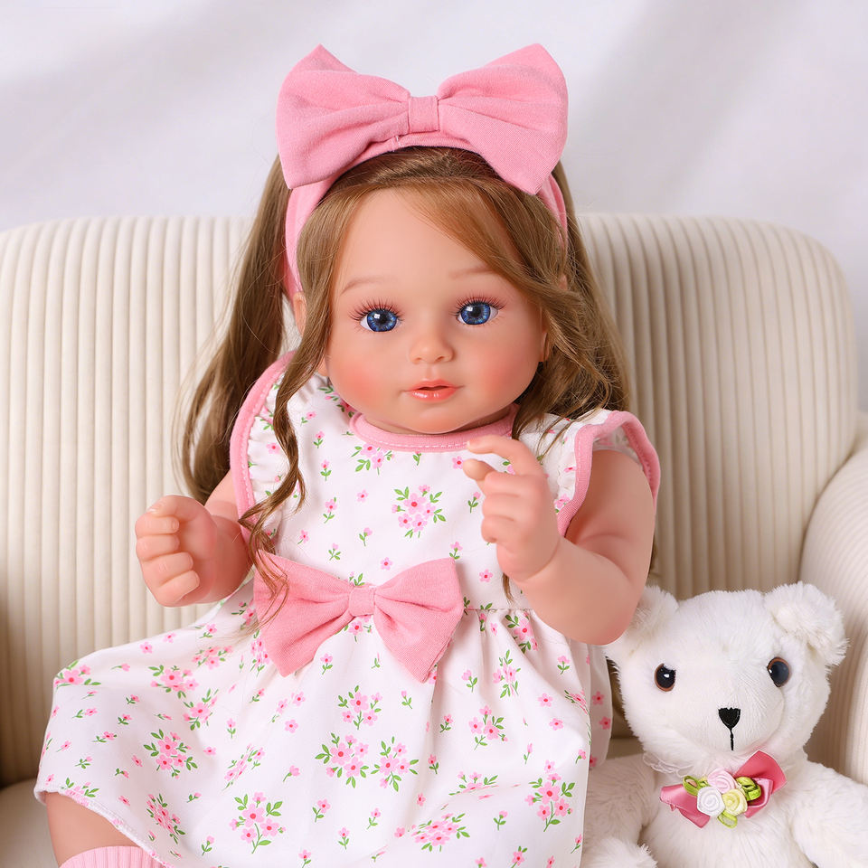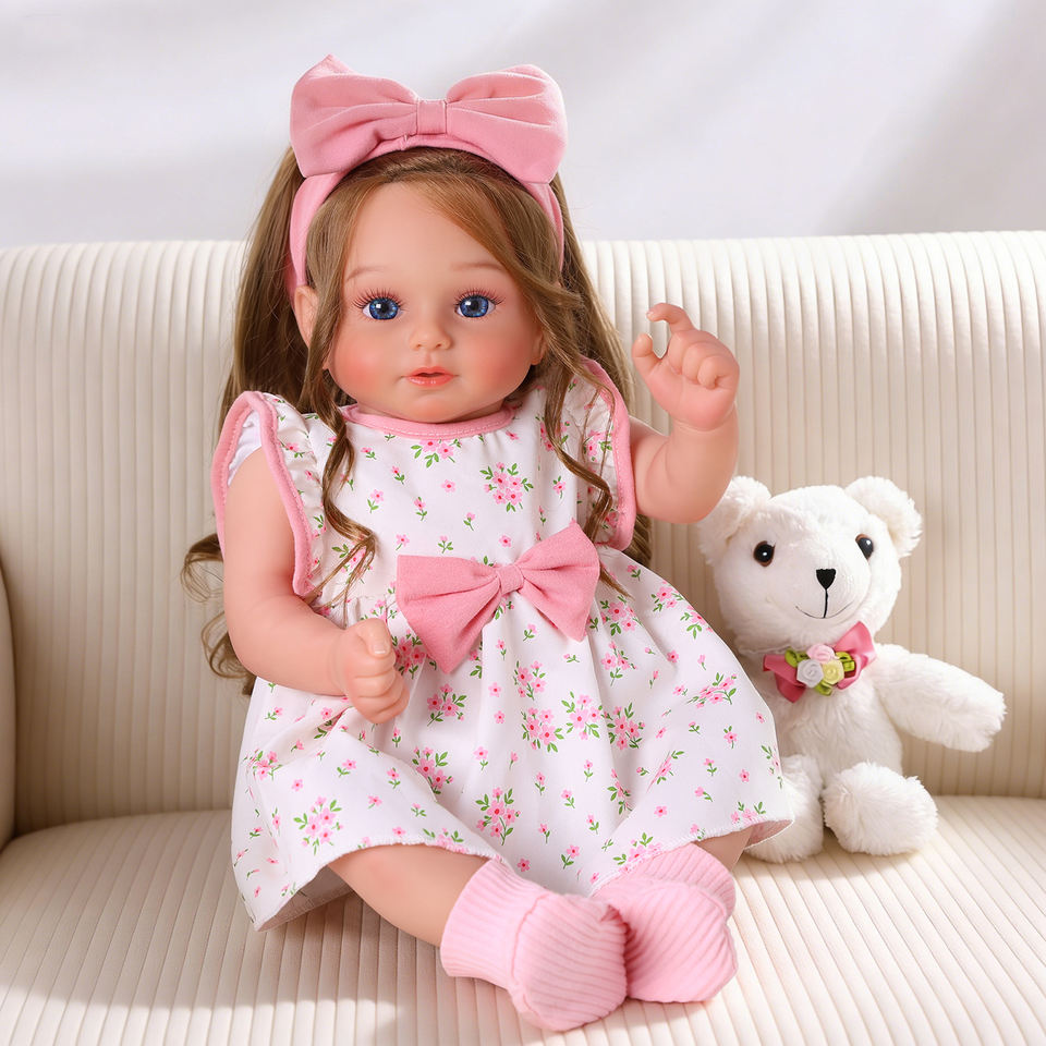 Bambola Reborn Rosie da 20 Pollici, Bambina con Capelli Ricci Marroni e Occhi Blu, Corpo in Vinile e Stoffa, Realistica Premium, Fornitura OEM ODM