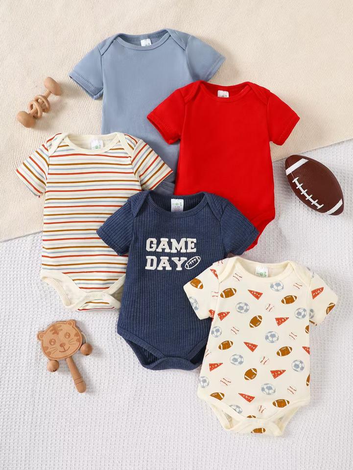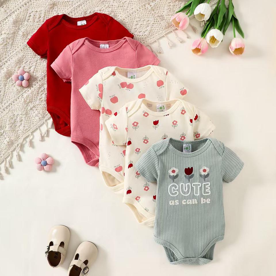 Set di 5 Body a Maniche Corte per Neonati, in Cotone Traspirante, con Stampe Carine, per Bambini da 0 a 12 Mesi