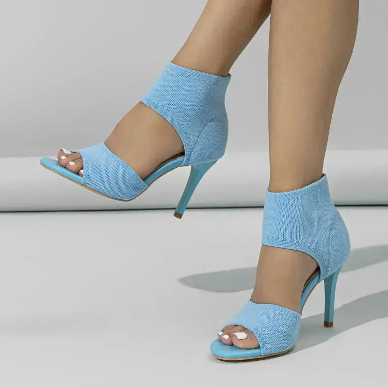 Décolleté Eleganti Baby Blue con Tacco a Spillo e Punta Aperta, Chiusura Slip-On, Design alla Moda con Soletta, per Donna, Estivi