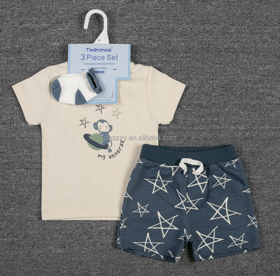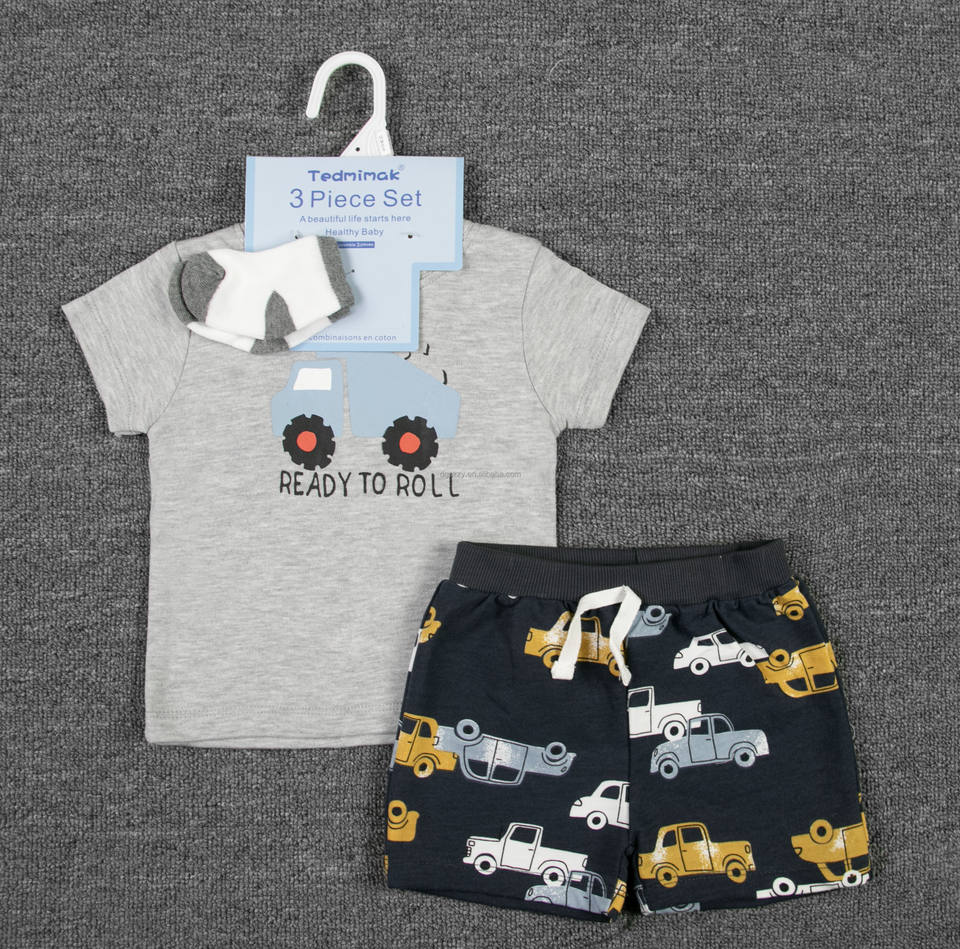 Set di vestiti per neonati pantaloncini estivi a maniche corte in cotone con stampa e collo a-due set di abbigliamento per neonati da 12 a 18 mesi