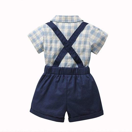Baby Boys Summer Suit Children Plaid Shirt Shorts 2 Piece Set Handsome Kids Clothes