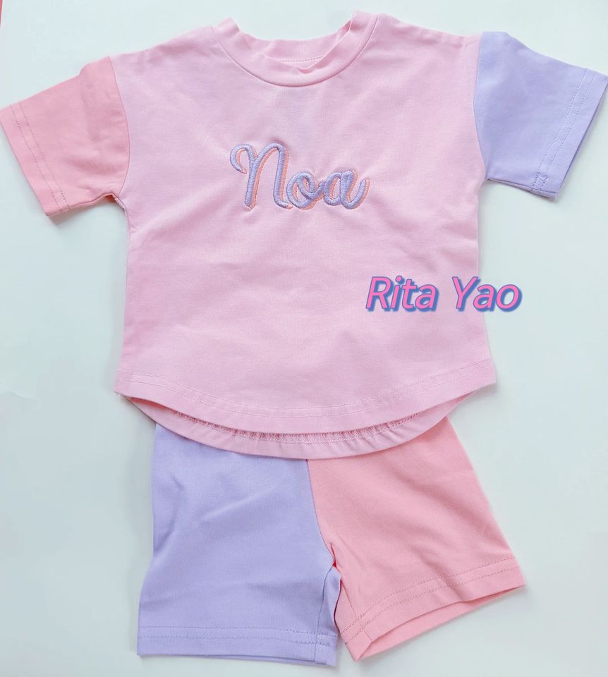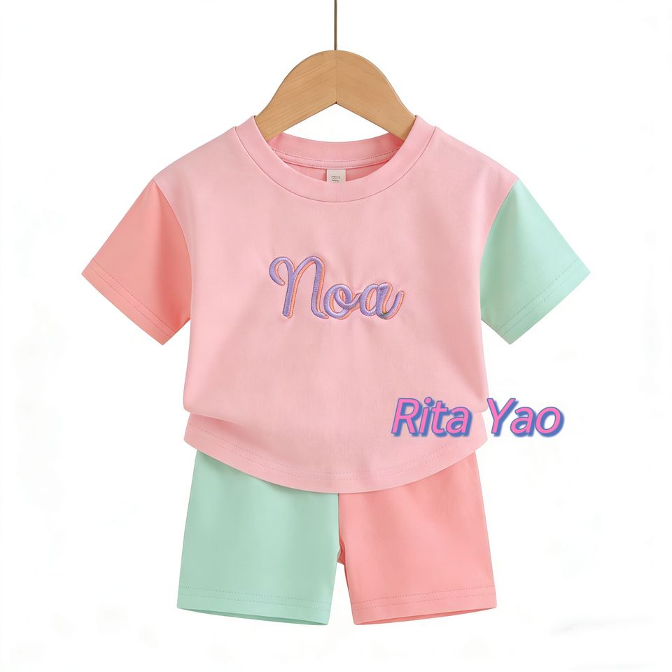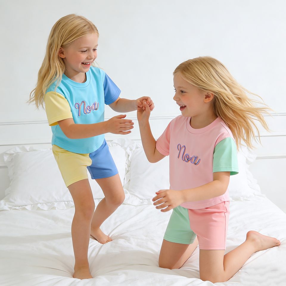 Set Personalizzato per Bambini con T-Shirt Ricamata e Pantaloncini Colorati, Completo Sportivo in Cotone per Bambine