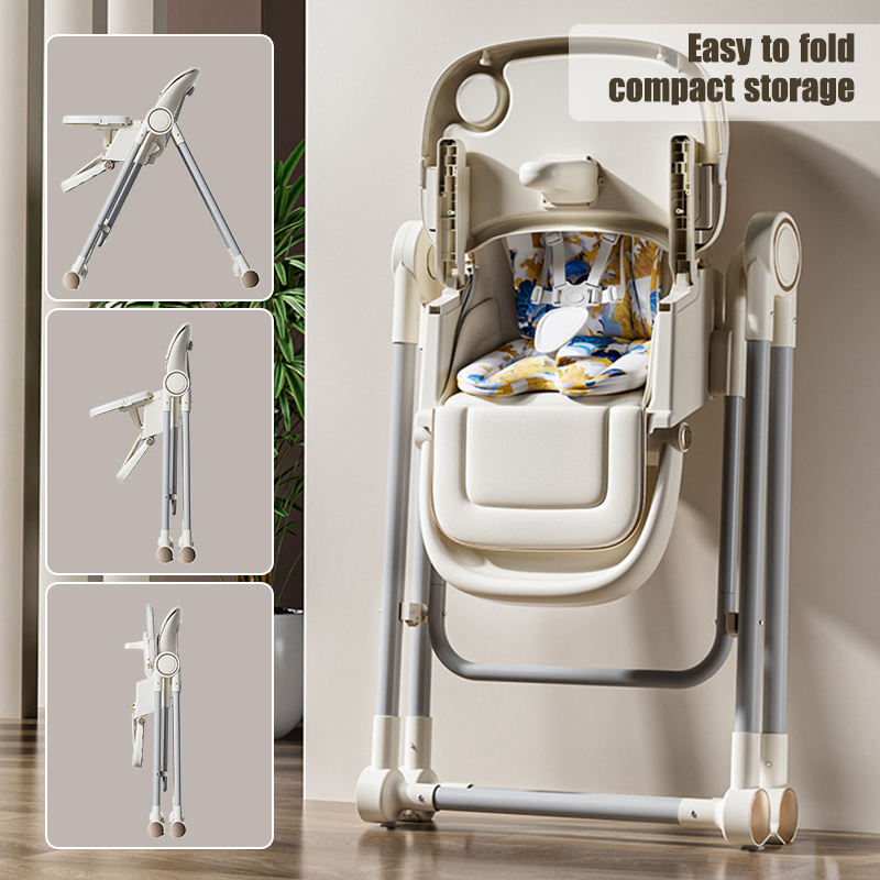 Seggiolone Pappa Pieghevole Sedia da Pranzo Altezza Regolabile Seggiolone per Bambini 3 in 1 con Ruote