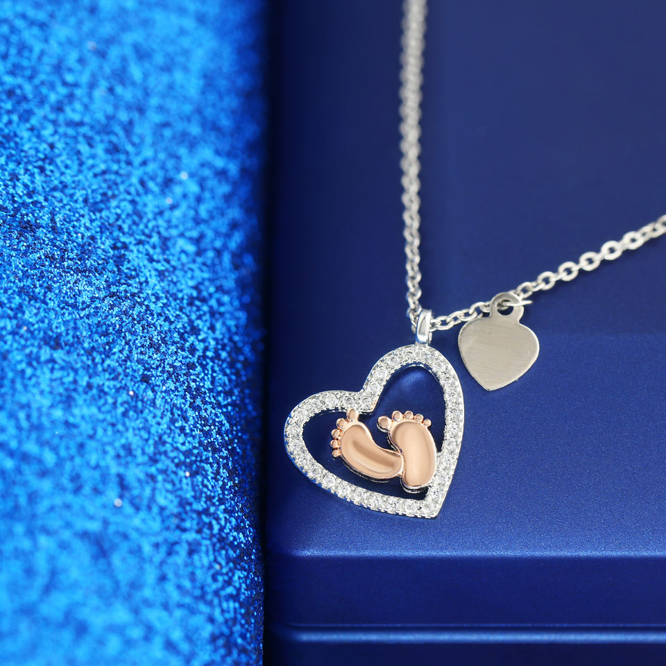Collana con Ciondolo a Cuore con Impronte di Piedi di Bambino, Amore Materno, Collana con Cuore e Impronta per la Festa della Mamma