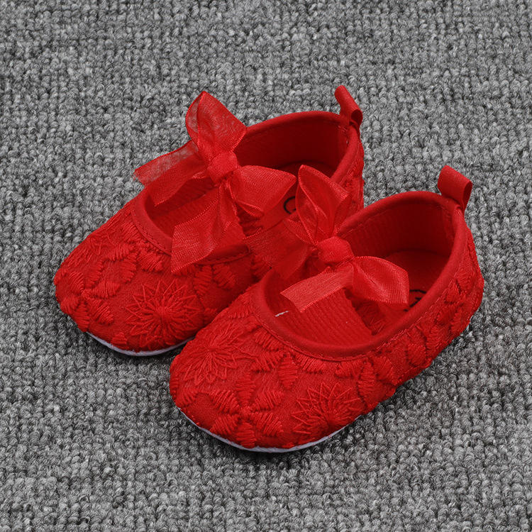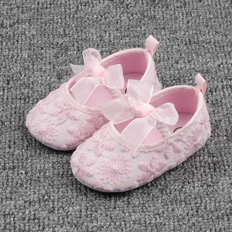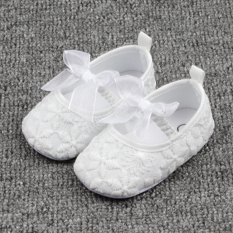 Scarpe da principessa First Walker da bambina in pizzo scarpe morbide piatte vestito da ragazza festa di compleanno scarpe da fiore per Baby Gir