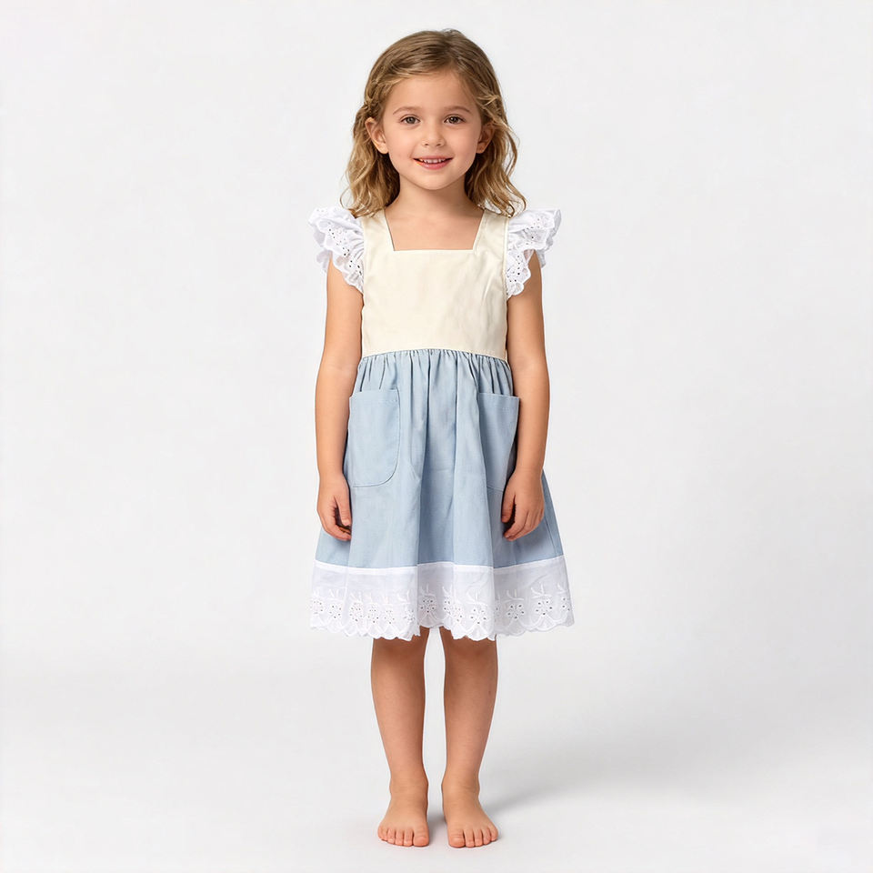 Abito di lino per bambina manica svolazzante in pizzo per bambini in cotone biologico vestiti personalizzati per bambini abiti con volant primavera estate