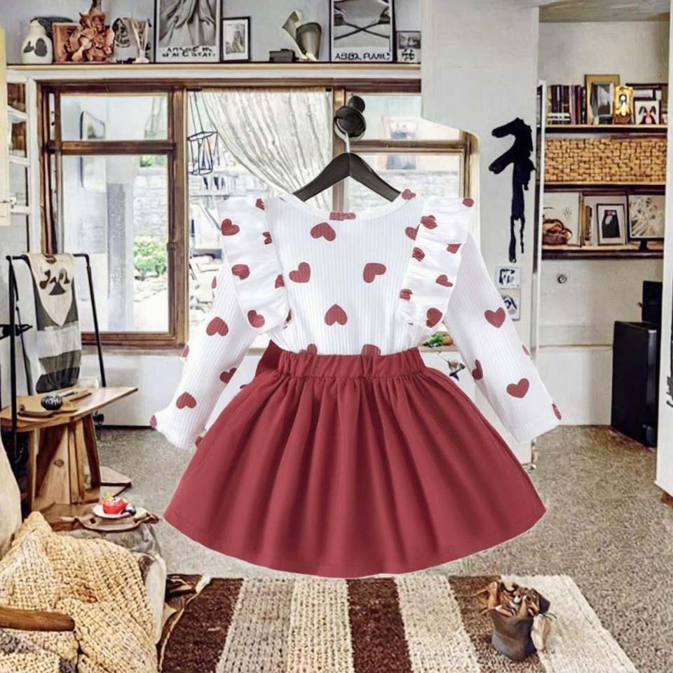 Baby Girl Valentines Day Casual Natural Outfit Knitted Long Sleeve Dress Heart Tulle Skirt Summer Clothes