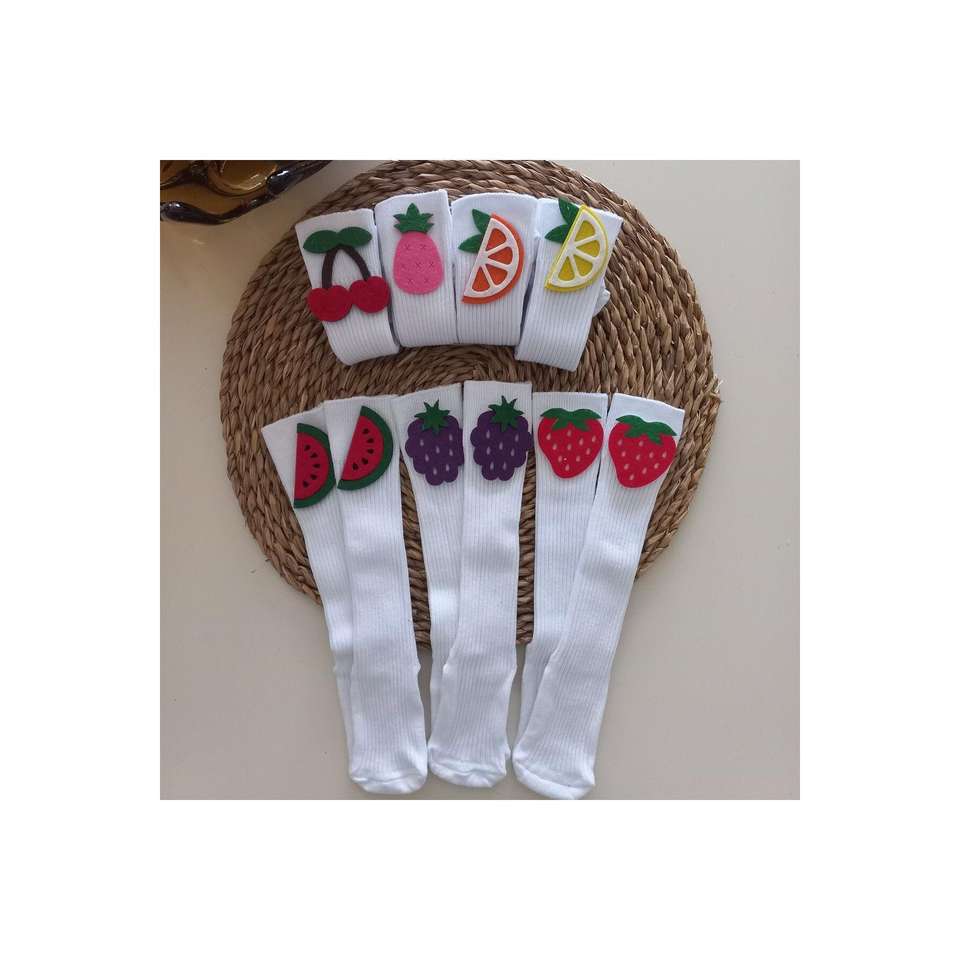 Baby Girl White Watermelon Strawberry Orange Lemon Pineapple Blackberry Felt Figured Knee-high Socks