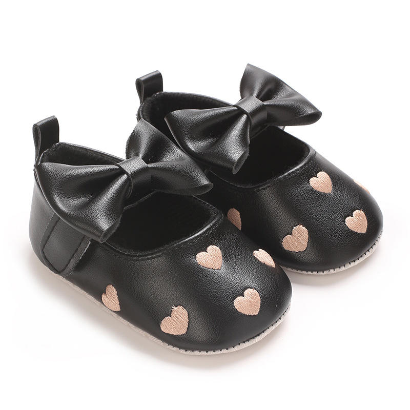 Scarpine per Neonata con Ricamo 'Love First', Chiusura a Velcro, Stile Principessa con Grande Fiocco alla Moda