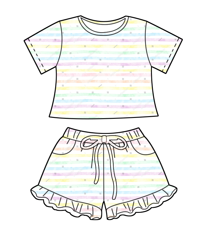 Design:Baby Girls Short Sleeve Striped T-Shirt & Ruffled Shorts 2-Piece