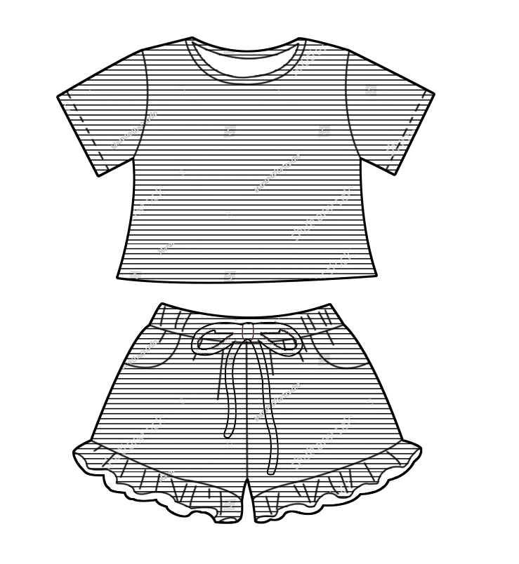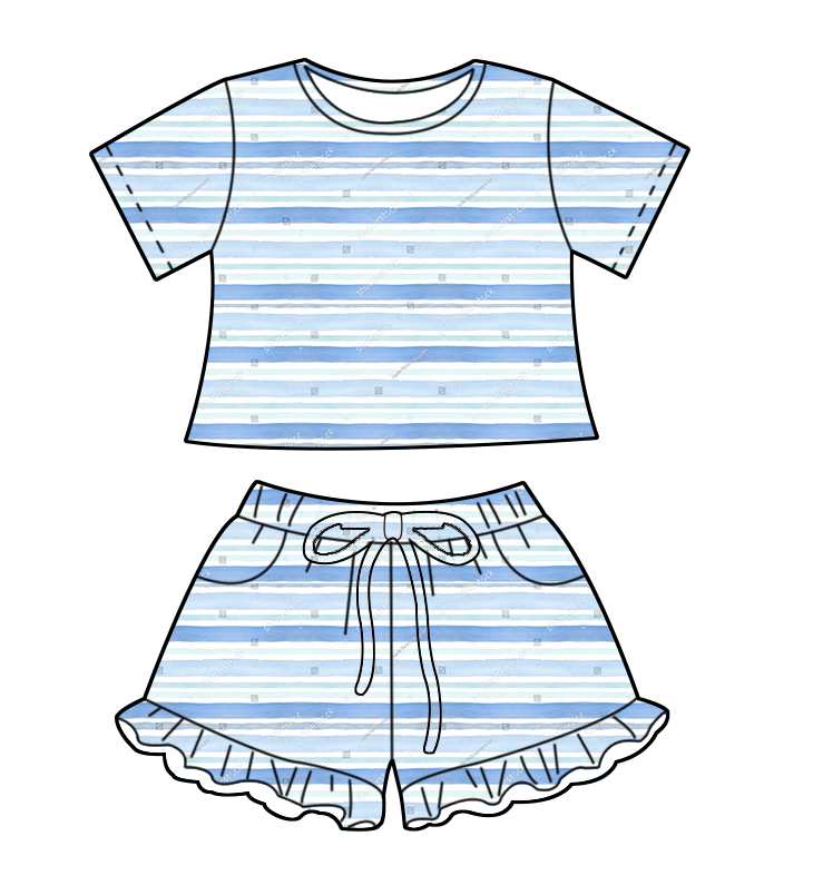 Keywords:Short Sleeve Striped T-Shirt & Ruffled Shorts 2-Piece Casual Set