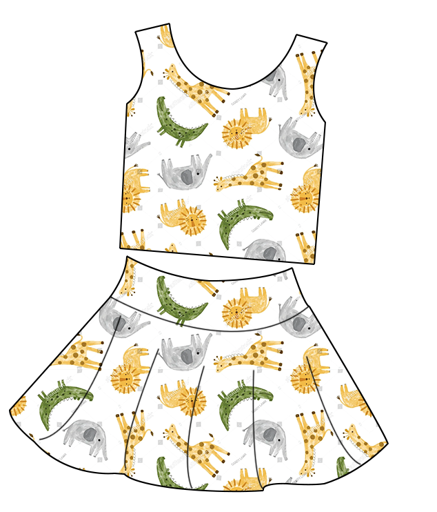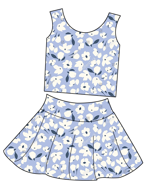 Design:Girls Sleeveless 2-Piece Active Set Tank Top & Flared Mini Skirt