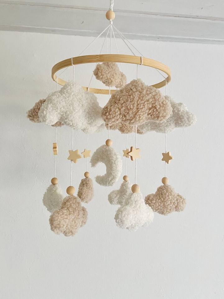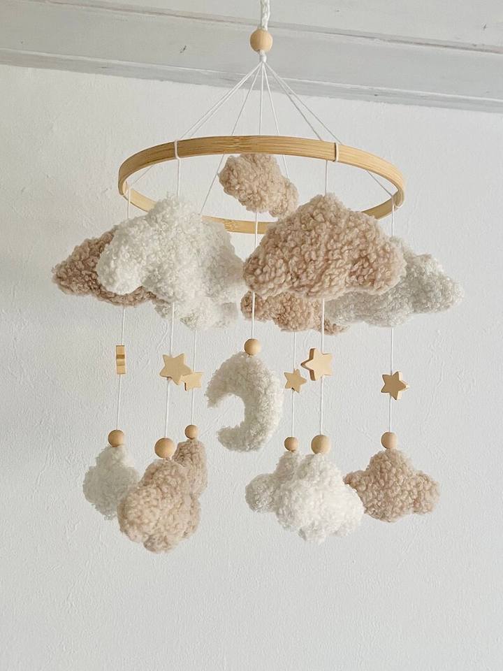 Baby Mobile Clouds Teddy Fabric Ecru Natural for Baby Crib Decoration